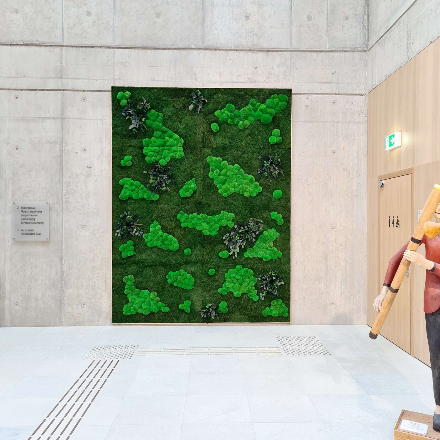 Für die Neugestaltung des ebenso erneuerten und erweiterten Rathauses in der Hansestadt Korbach wurden wir mit einer Moos- und Pflanzenwand in der Größe 3,58 x 2,72m beauftragt. Es sollte ein...