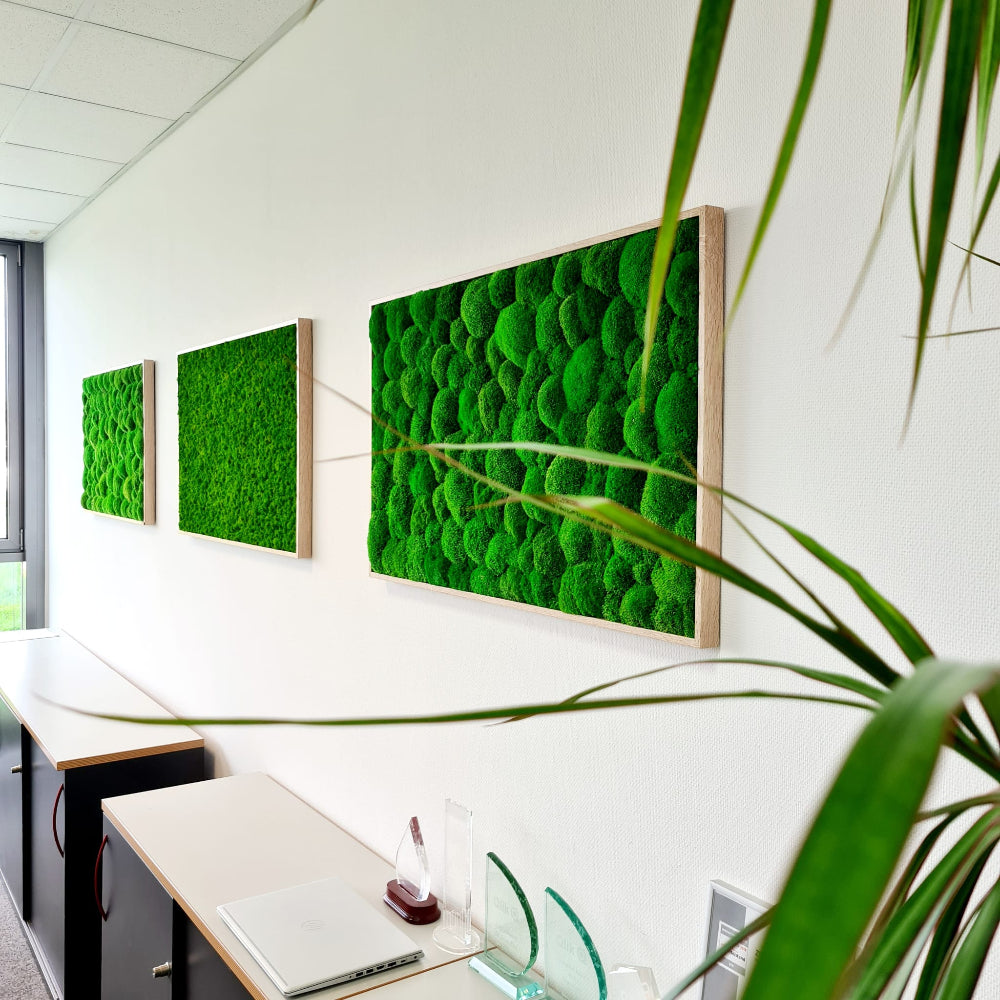 Verwandeln Sie Ihre Büroräume in eine grüne Wohlfühloase – ganz ohne Aufwand. Unsere maßgefertigten Moosbilder sind mehr als Dekoration: Sie sind eine Investition in Atmosphäre, Gesundheit und Produktivität.