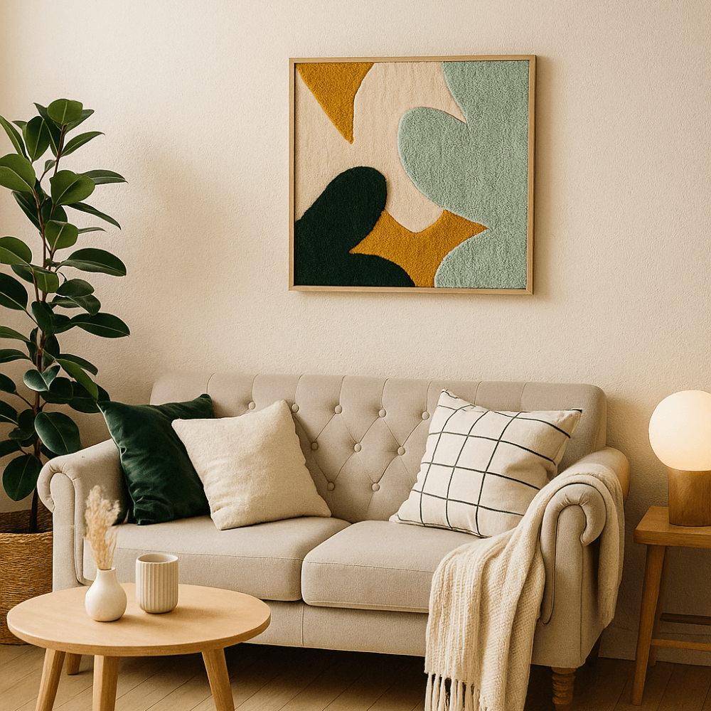 Unsere gerahmten Wandteppiche sind mehr als Dekoration – sie sind ein Statement für Stil, Wärme und Wohlbefinden. Jedes Stück wird mit Liebe zum Detail gefertigt und in einem Eichenholzrahmen gerahmt. Durch seine lebendige Struktur mit unterschiedlichen Florhöhen und harmonischen Farben bringt es spürbare Tiefe in jeden Raum.