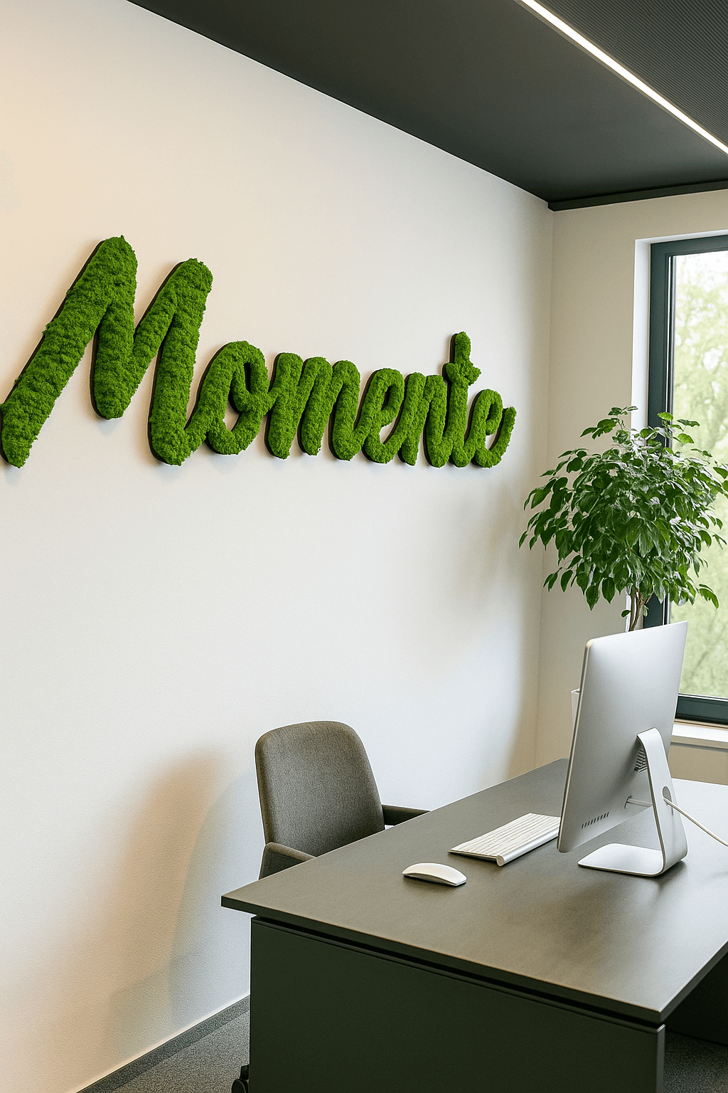 Verwandeln Sie Ihre Büroräume in eine grüne Wohlfühloase – ganz ohne Aufwand. Unsere maßgefertigten Moosbilder sind mehr als Dekoration: Sie sind eine Investition in Atmosphäre, Gesundheit und Produktivität.