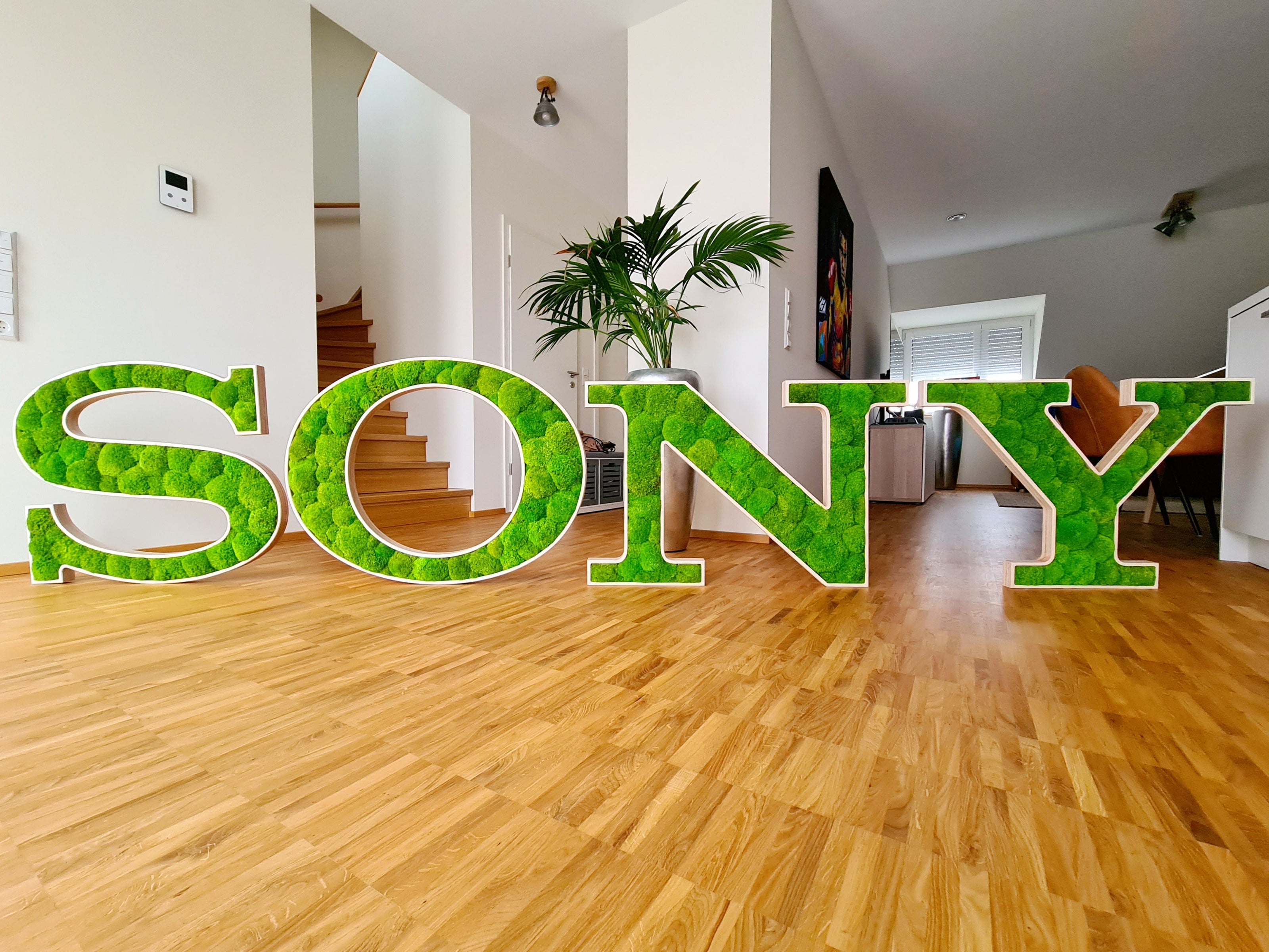 Du hast einen großartigen Slogan und möchtest ihn aussagekräftig in Szene setzen? Wir können Deine Unternehmensphilosophie in ein einzigartiges, immergrünes Wandbild aus Moos integrieren. Unsere individuell hergestellten Moos- und Pflanzenwände mit deinem Slogan sind nicht nur ein optisches Highlight, sondern tragen zudem zu einem angenehmeren Raumklima und einer besseren Akustik bei.