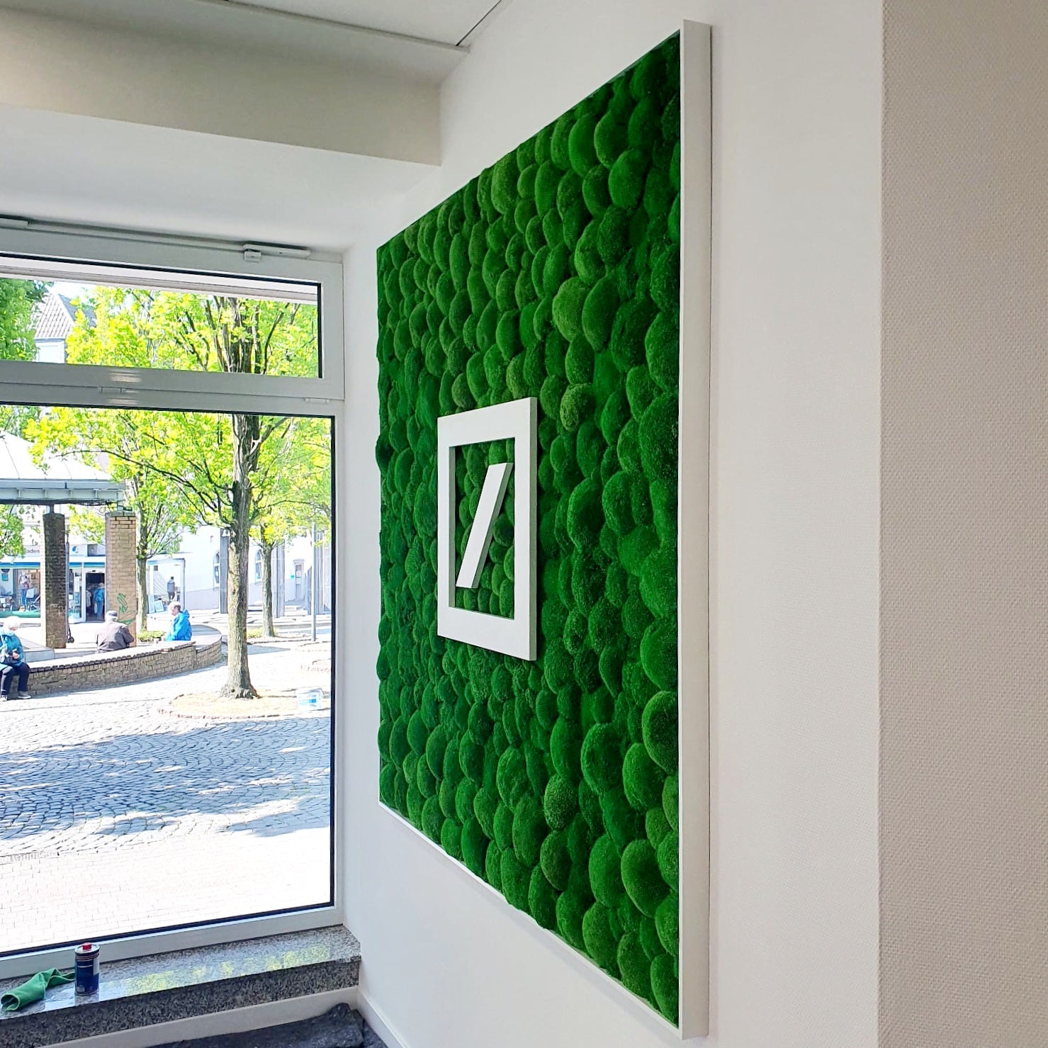 In unserer Werkstatt in Walldorf fertigen wir neben individuellen Mooswänden und Moosbildern auch Logos aus Moos oder wir integrieren dein Firmenlogo in Dein Moosbild.