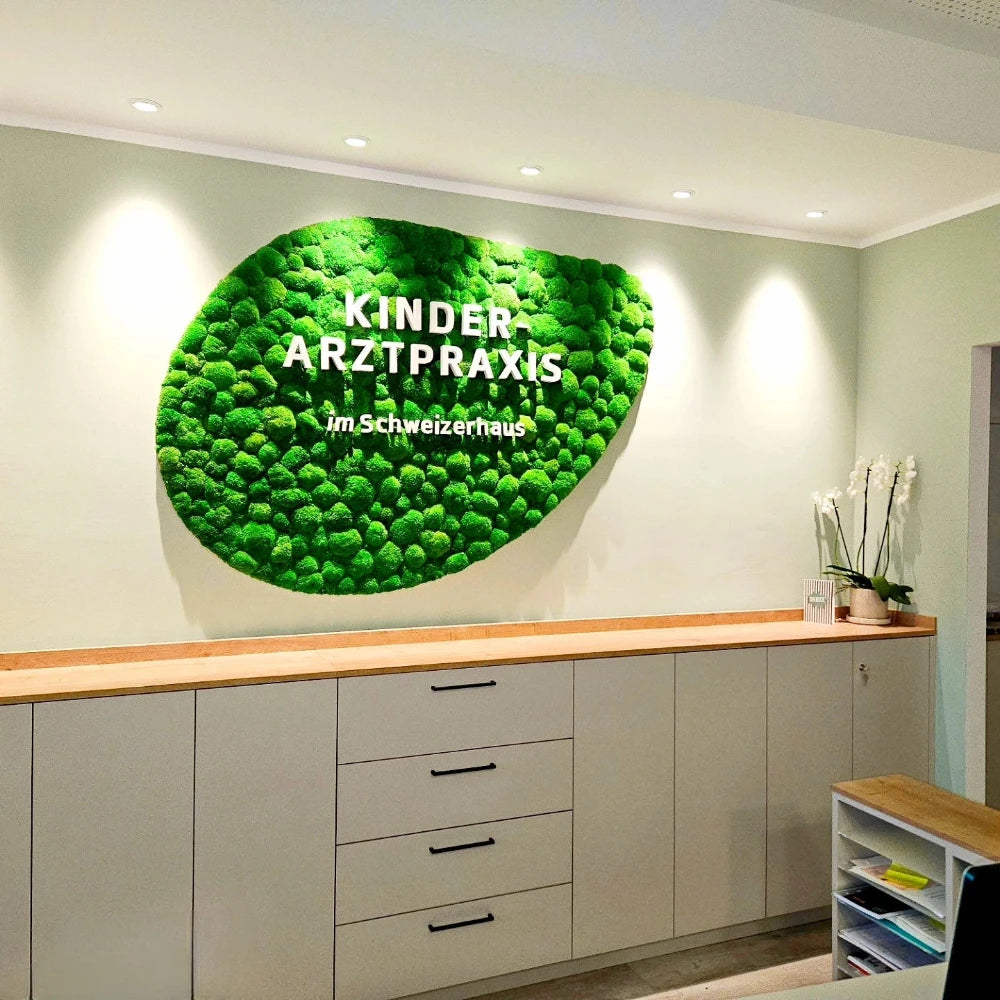 Unsere Pflanzen- und Mooswände, sowie Firmenlogos aus Moos sind zu 100% individualisierbar und an den jeweiligen Raum anpassbar.