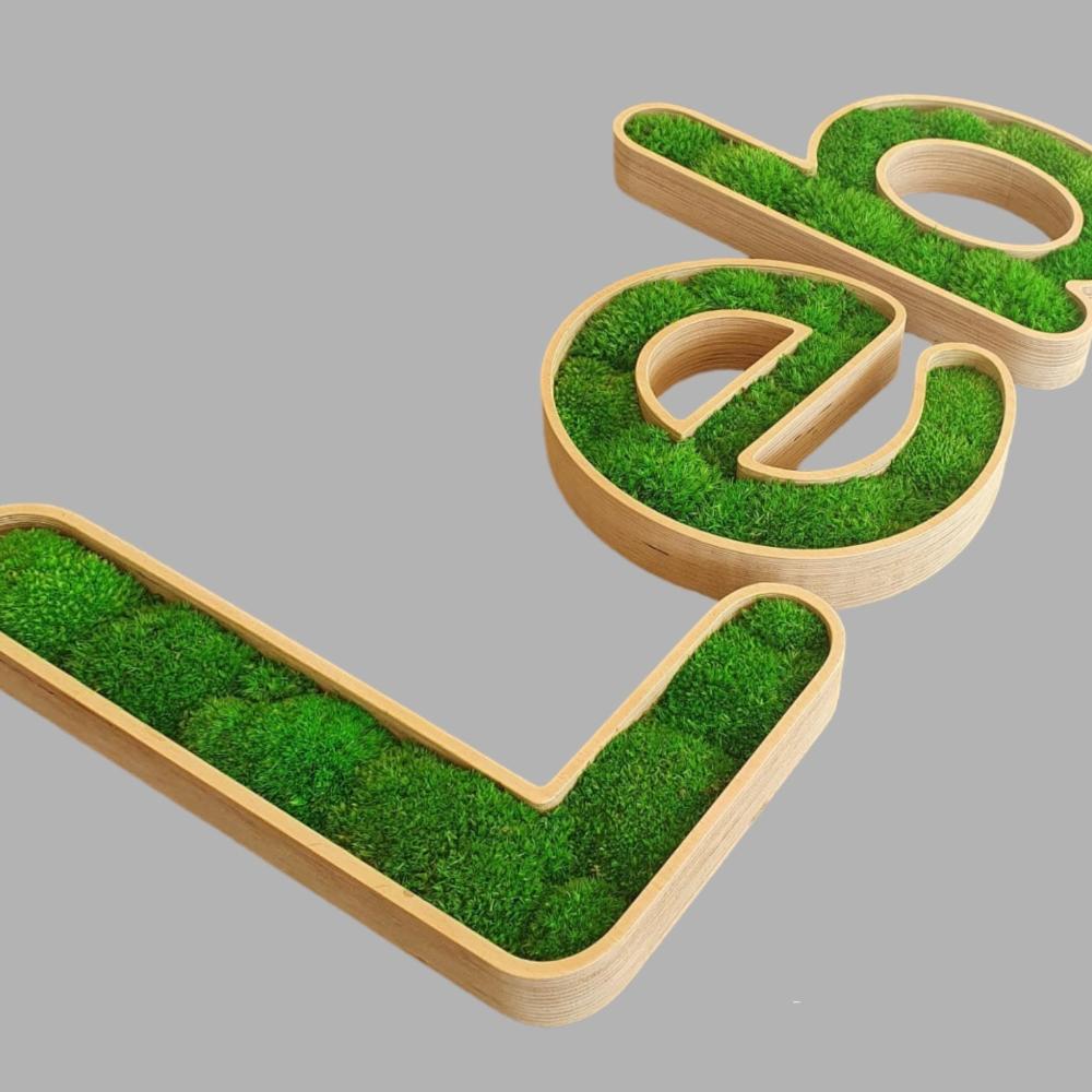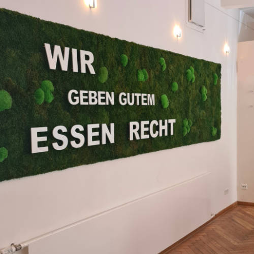 Mit Logointegrationen lassen sich Mooswände oder - bilder ganz individuell personalisieren. Ausgefräste Holzbuchstaben die mit Moos gefüllt werden oder Schriftzüge - wir versuchen alle Logowünsche Realität werden zu lassen.