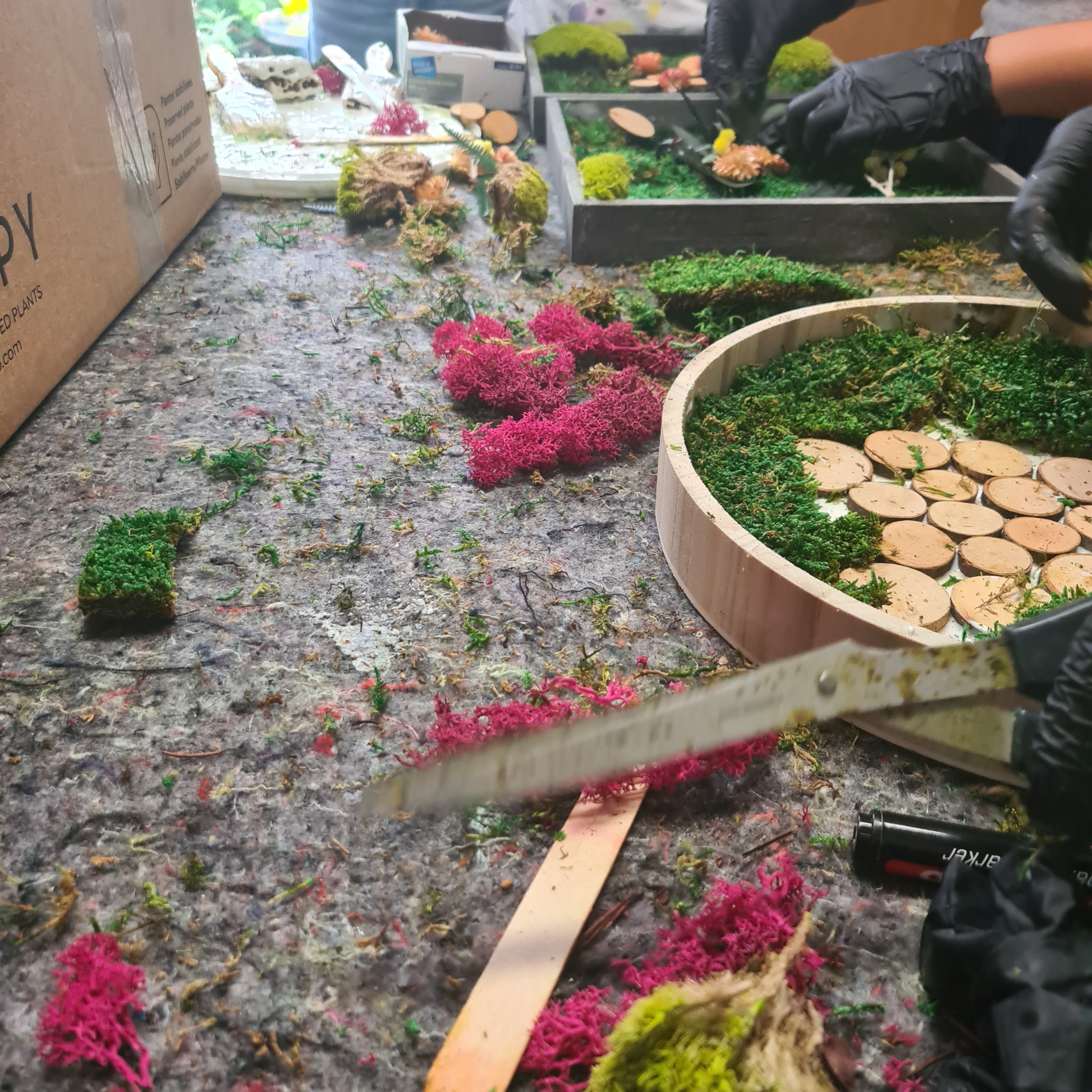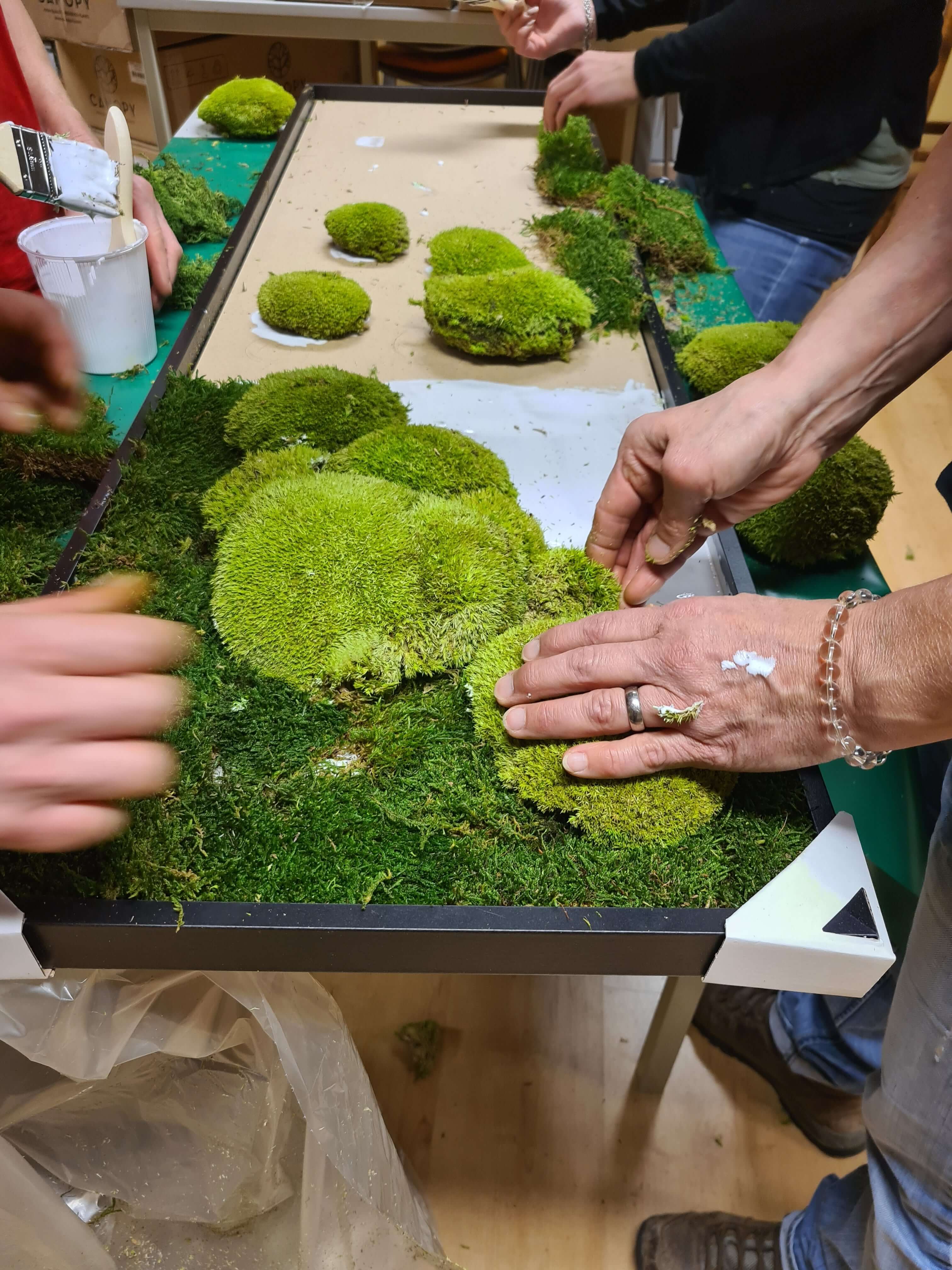 Je nach Gruppengröße halten wir Euren Workshop in unserer Mooswerkstatt ab oder kommen mit allen Materialien in Eure Räume!