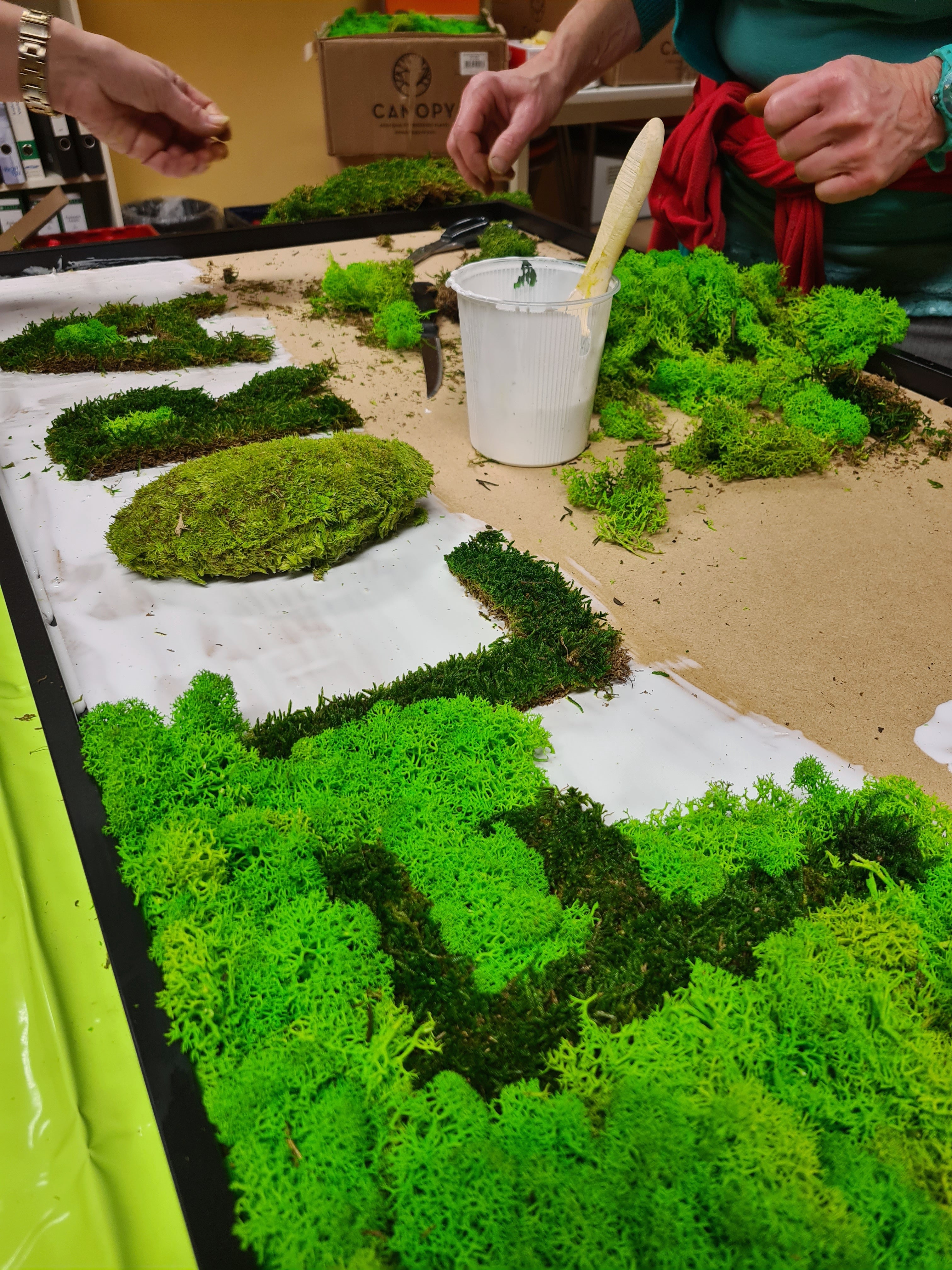 nehmt Euer Gemeinschaftswerk oder Eure kleinen Moosbilder mit nach Hause oder ins Büro