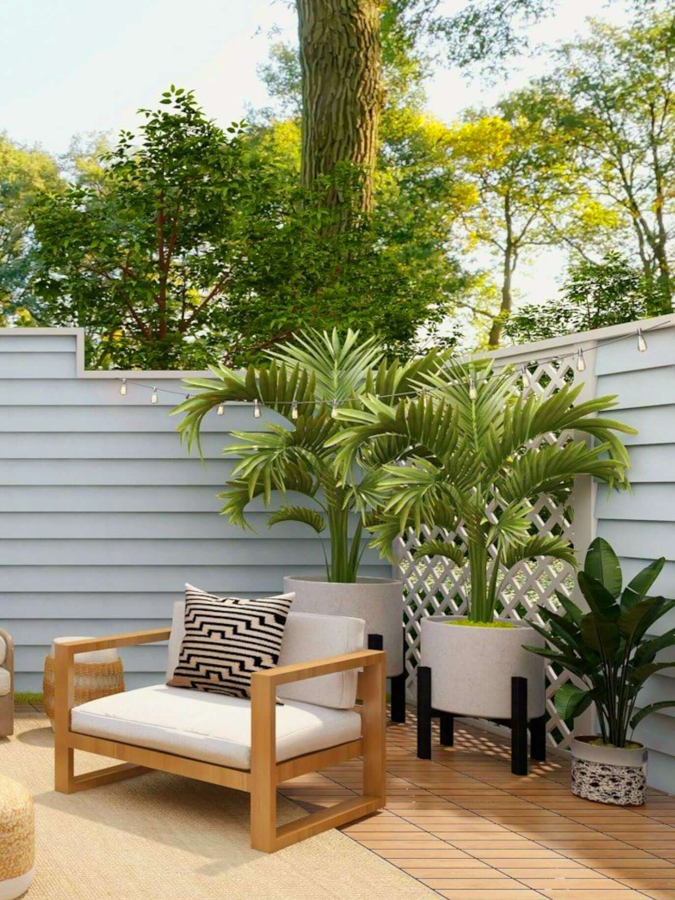 Zusammengewürfelte Töpfe und Pflanzgefäße, lieblos arrangierte Outdoormöbel ohne Konzept. Ein Außenbereich, der zwar funktionell ist, aber eben nicht schön.